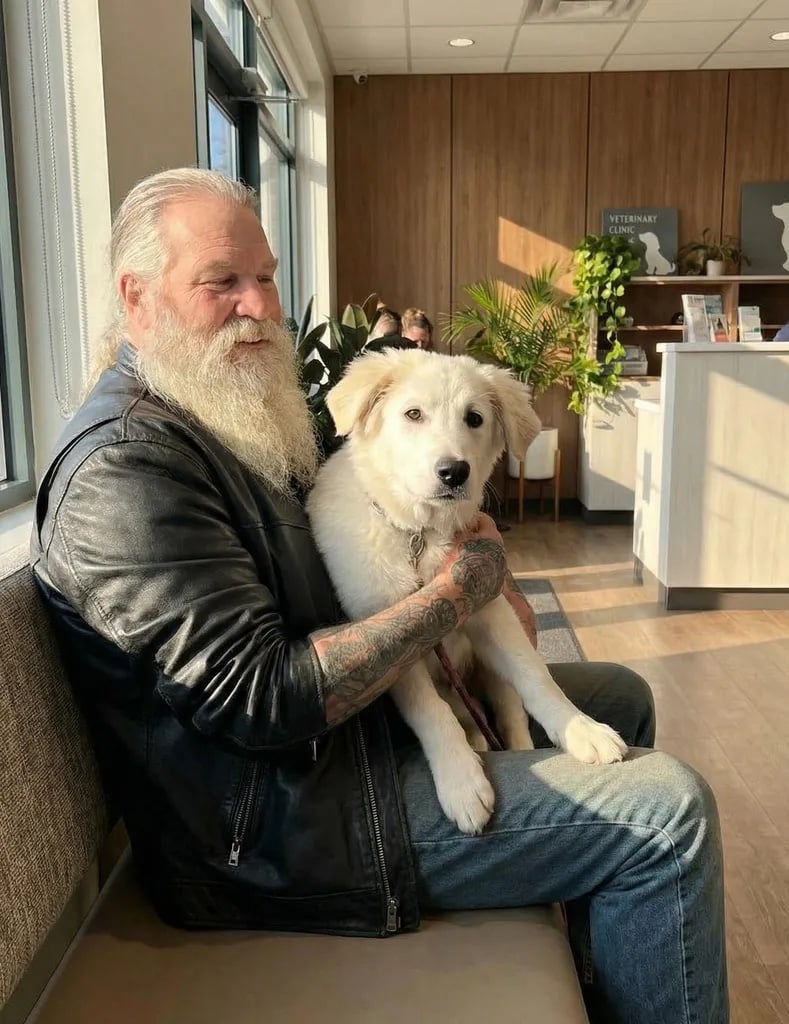 It was written in a child’s handwriting, in crayon on lined notebook paper. “Please save Daisy. She’s all I have left. Daddy says she has to die but I know angels ride motorcycles. I prayed you’d find her. There’s $7.43 in her collar. It’s all my tooth fairy money. Please don’t let her die alone. Love, Madison, age 7.” I checked the collar pocket and found the coins wrapped carefully in tissue. I looked at Daisy again. She was tired, but her eyes were gentle and trusting. I couldn’t leave her there. I lifted her onto my jacket, untied the chain, and drove straight to the nearest emergency animal clinic.