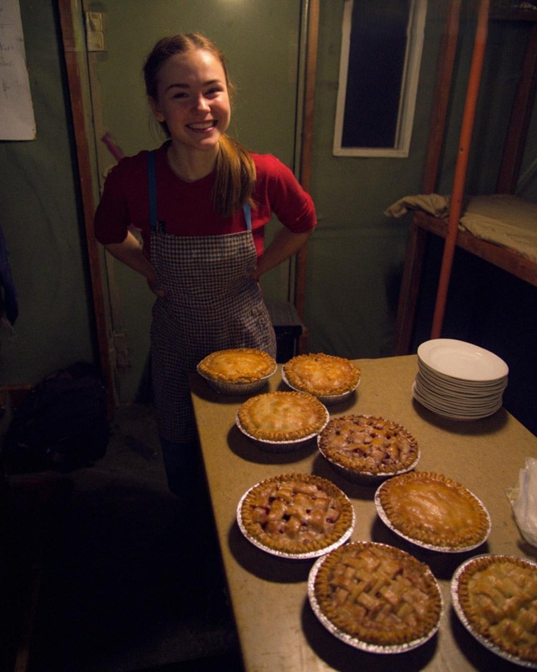 Apple. Peach. Blueberry. Strawberry rhubarb when I could afford it. I’d save every spare dollar from my monthly aid for flour, butter, and fruit. Some nights I baked ten pies. Once, twenty.