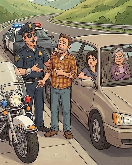 The officer pauses, then bursts out laughing. “Get back in your car. I’m giving you a police escort—lights and sirens included—so she gets home safely!””