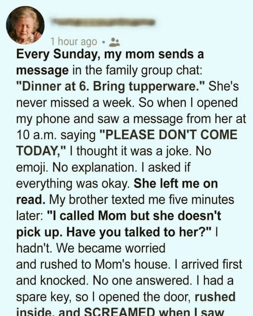 The text shattered everything. One message, and the family we thought we knew died in an instant. No warning, no softness—just the quiet murder of the only tradition holding us together. By the time we reached Mom’s house, the silence between us felt like a verdict. Inside, the air was staged, the table set for something more dangerous than dinner. And there he was, a stranger with our father’s fac… Continues…
