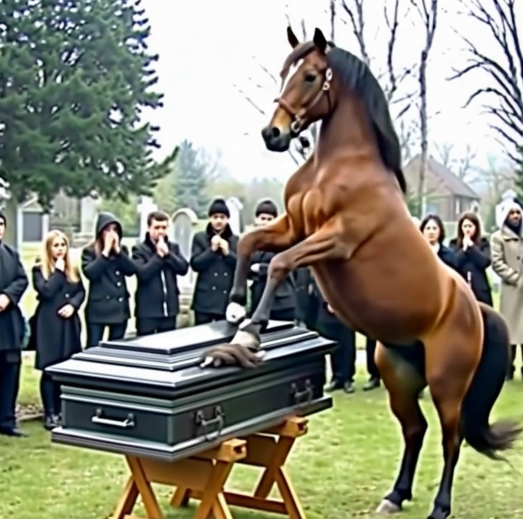 As she reached the coffin, Astoria reared up, her hooves striking the lid with a force that echoed through the still air. The sound was startling, like thunder ripping through a calm sky. The lid gave way with a sickening crack, and the crowd gasped collectively, horror and disbelief etched on their faces.