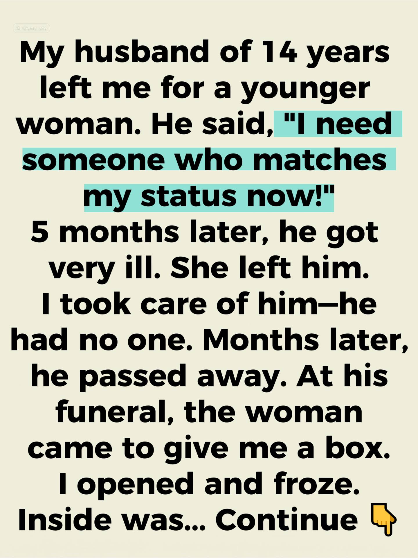 Five months later, I got a call from one of his former colleagues. My husband — the man who once walked with confidence and arrogance — had fallen severely ill. And the young woman he’d left me for? Gone. She had vanished the moment things stopped being fun. His so-called friends disappeared too. Suddenly the man who had claimed he deserved “more” had no one.
