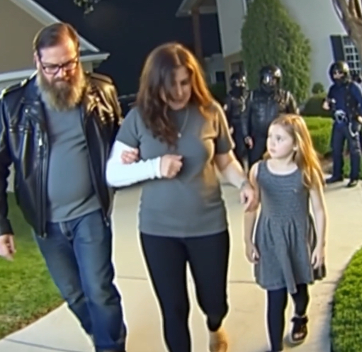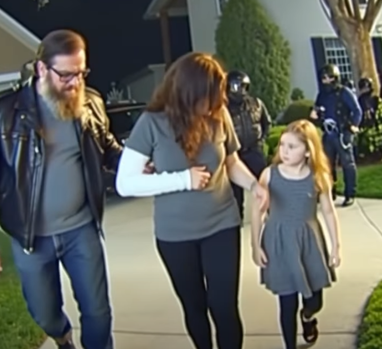 The door wasn’t locked. It swung inward with a reluctant creak, and inside, the house felt even smaller, the air heavy with the metallic tang of fear. On the stairs, a little girl with a halo of tangled hair clutched the phone like it was a lifeline. Her eyes were too big, too knowing for a child.