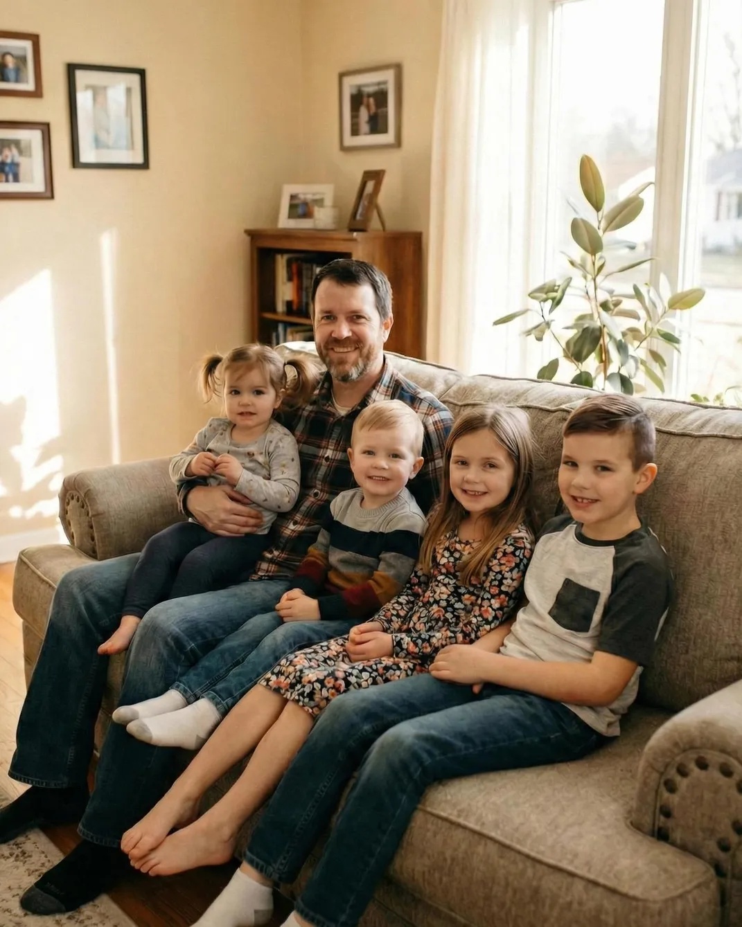 A year later, I learned their parents had left behind more than memories. They had written a will, created a small trust, and made one wish unmistakably clear: their children were never to be separated. Without knowing it, I had carried out what they hoped for. I didn’t step forward for money or a house—I didn’t even know those existed. I said yes because four siblings were about to lose each other, and I couldn’t let that happen. I’m not their first father. I’ll always miss the family I lost. But now, when four kids pile onto the couch, steal my popcorn, and call me “Dad,” I know this much is true: this is what love looks like after loss. Us. Together.