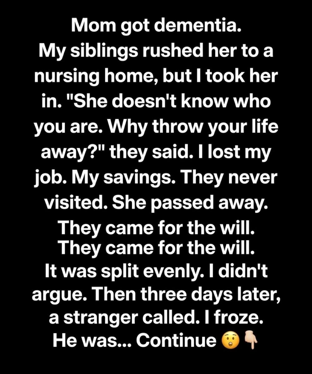 Afterward, my siblings returned, efficient and composed. The will was opened. Everything was divided equally, exactly as she had arranged years earlier, before illness reshaped her world. I didn’t object. I didn’t explain the nights without sleep, the years without a paycheck, the slow erosion of my own life. Grief had already taken what it wanted. I didn’t have the strength to fight for validation.