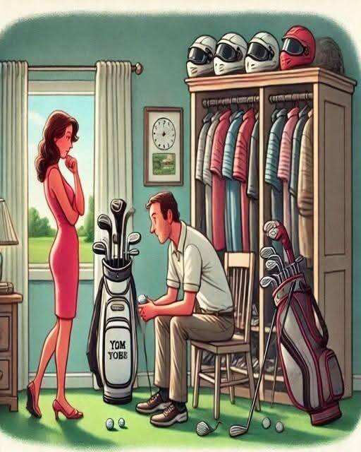 One evening, not long after their honeymoon, he was busy organizing his golf equipment