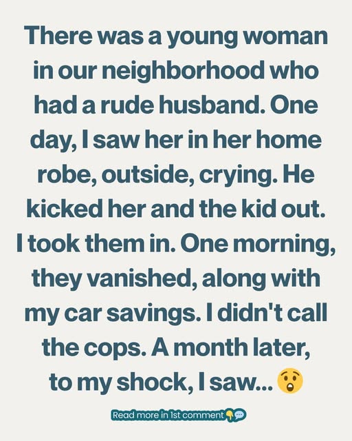 But I know this: trusting my gut, and her, was the right thing. And somewhere out there, a woman and her child are safe—because someone chose not to look away.