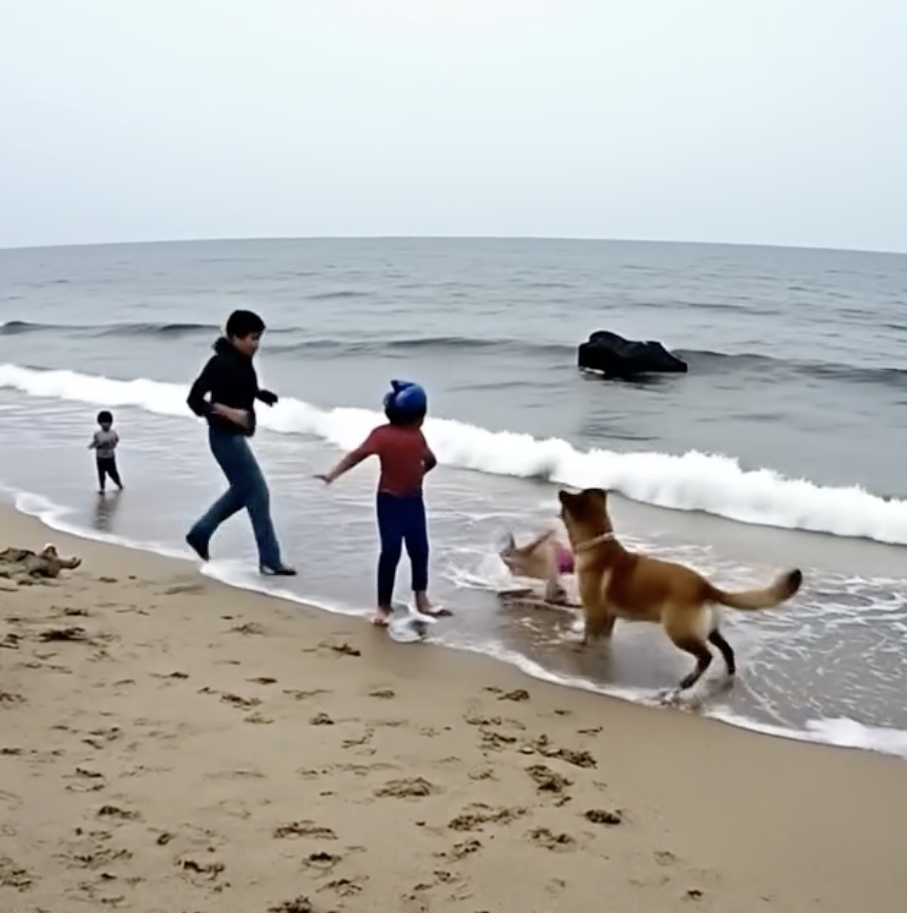 Buster’s howling turned into a series of sharp, distressed barks, urging the children to step back. The air crackled with an unfamiliar energy that set Maya’s heart racing. She dropped the camera, its lifeless lens now half-buried in sand, and pulled her brother closer. A shiver ran down her spine, stronger than the chill of the sudden cold; it was the unmistakable brush of fear.