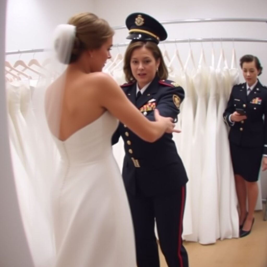 She turned back toward the mirror, lifting her chin as if nothing had happened. Heat shot up my neck. My face burned, but I stayed still. Years of training in active combat zones had taught me how to keep my cool under fire, but it didn’t stop the acid of humiliation from crawling under my skin. People stared, then quickly pretended not to. The sales clerk shifted from foot to foot. My mother looked away, suddenly fascinated by a rack of bridesmaid dresses. Nobody said a word.