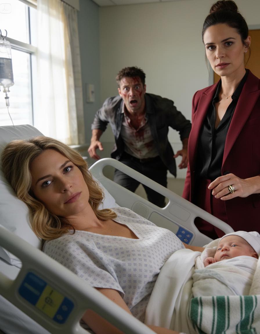 My fingers tightened in the hospital blanket. My baby shifted softly beside me, that fragile sound cutting through the tension.