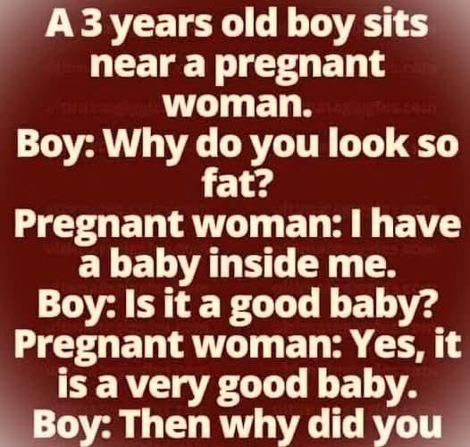 Humor often comes from the unfiltered innocence of childhood—a time when kids take everything literally and misunderstand the adult world in the funniest ways. One classic example is a simple exchange between a curious three-year-old boy and a pregnant woman.