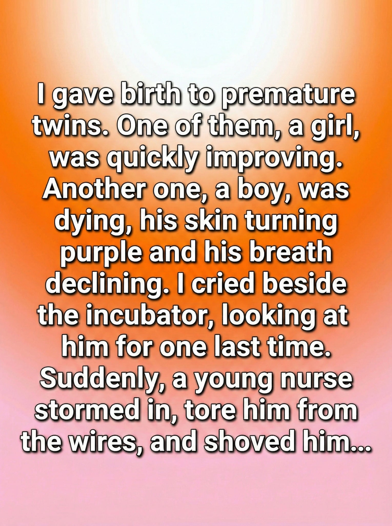 The room was filled with the gentle hum of machines and the quiet footsteps of nurses. I sat beside two tiny incubators, watching my newborn twins through the clear glass. They had arrived earlier than expected, so small that my heart ached every time I looked at them. My daughter was growing stronger each day, her tiny fingers curling as if she were holding onto life with determination. My son, however, seemed to struggle more. Doctors reassured me they were doing everything possible, yet worry never left my chest. I whispered hopeful words to both babies, promising that they were never alone.