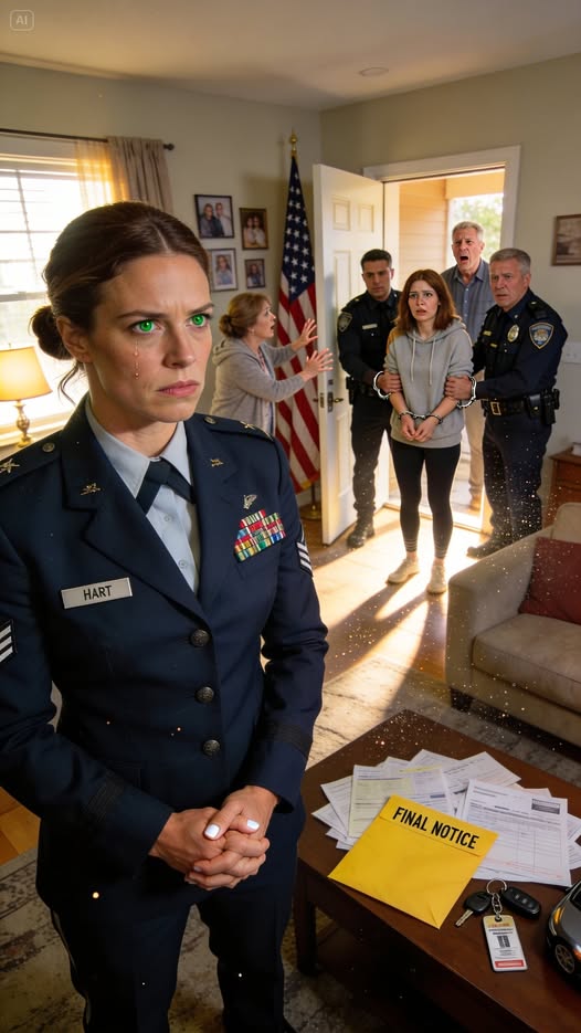 I didn’t yell. I didn’t cry. I simply slid the yellow envelope across the coffee table. Megan’s face went pale as she saw the case number. “Lauren… you filed?” she whispered. Before the excuses could start—before my mother could claim it was a “misunderstanding” or my father could argue that Megan “needed stability”—there was a thunderous knock at the door. The Grove City Police had arrived with a warrant. I watched, hands folded and face a neutral mask of military discipline, as they cuffed my sister in front of our sobbing mother.
