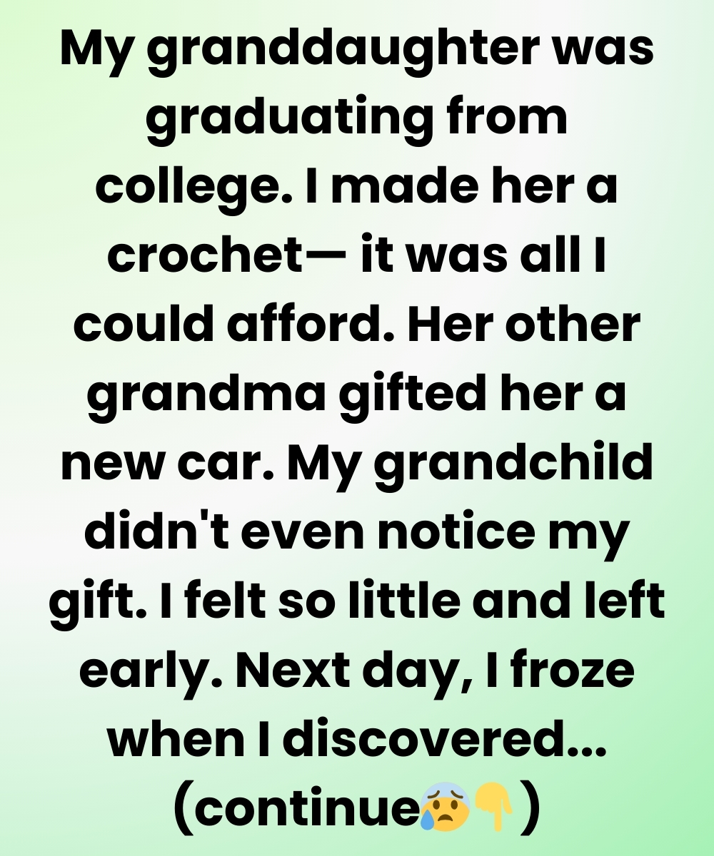 My granddaughter was graduating from college. I made her a crochet; it was all I could afford. Her other grandma gifted her a brand-new car. My granddaughter didn’t even notice my gift. I felt so small and left early.