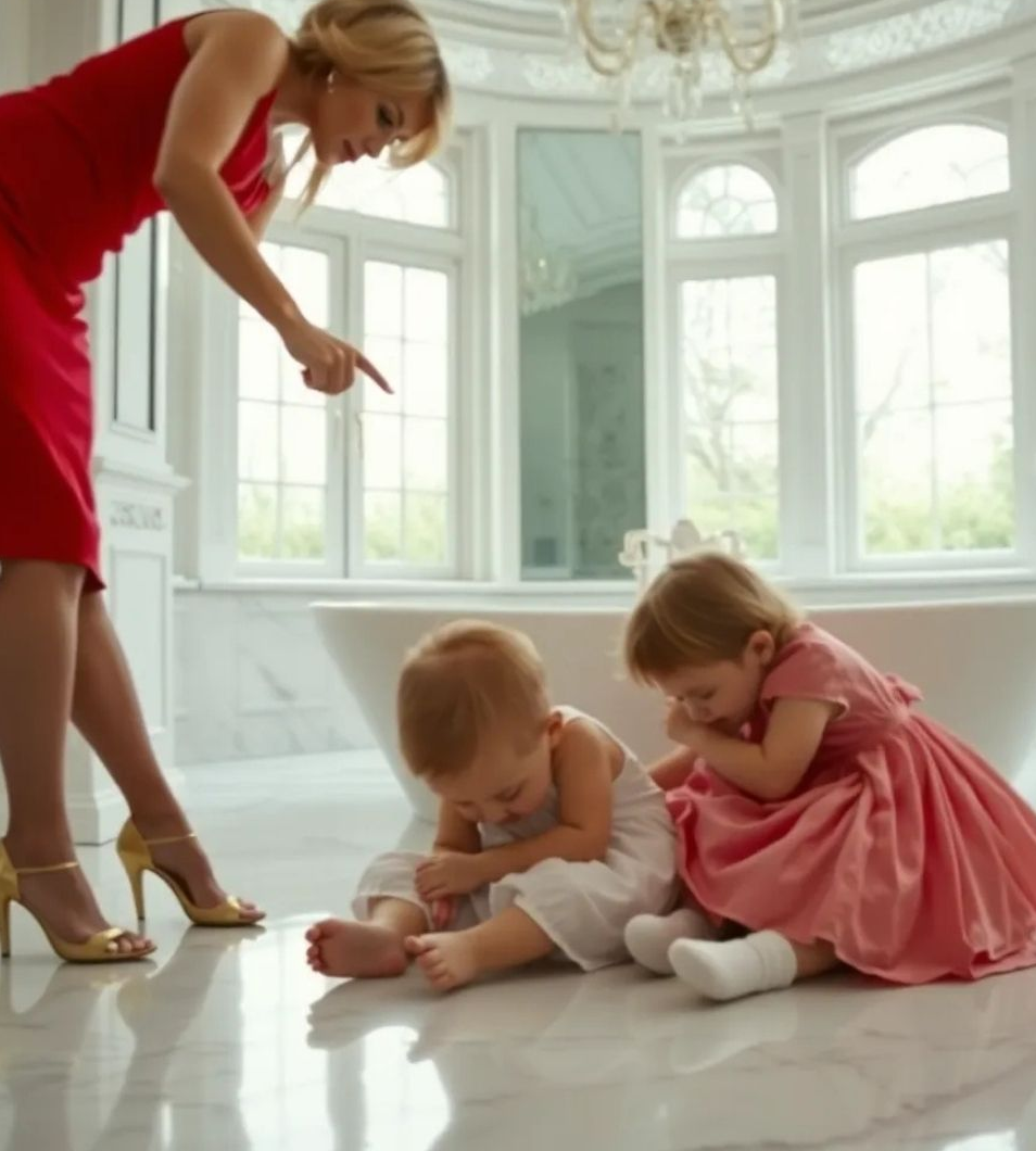 On the freezing cold tile, my daughter Charlotte was kneeling in a puddle of gray, chemically pungent water. She was five years old, wearing a faded dress two sizes too small that I didn’t recognize. Her tiny, trembling arm was wrapped protectively around her three-year-old brother, Thomas, who was sobbing silently into the crook of her neck.