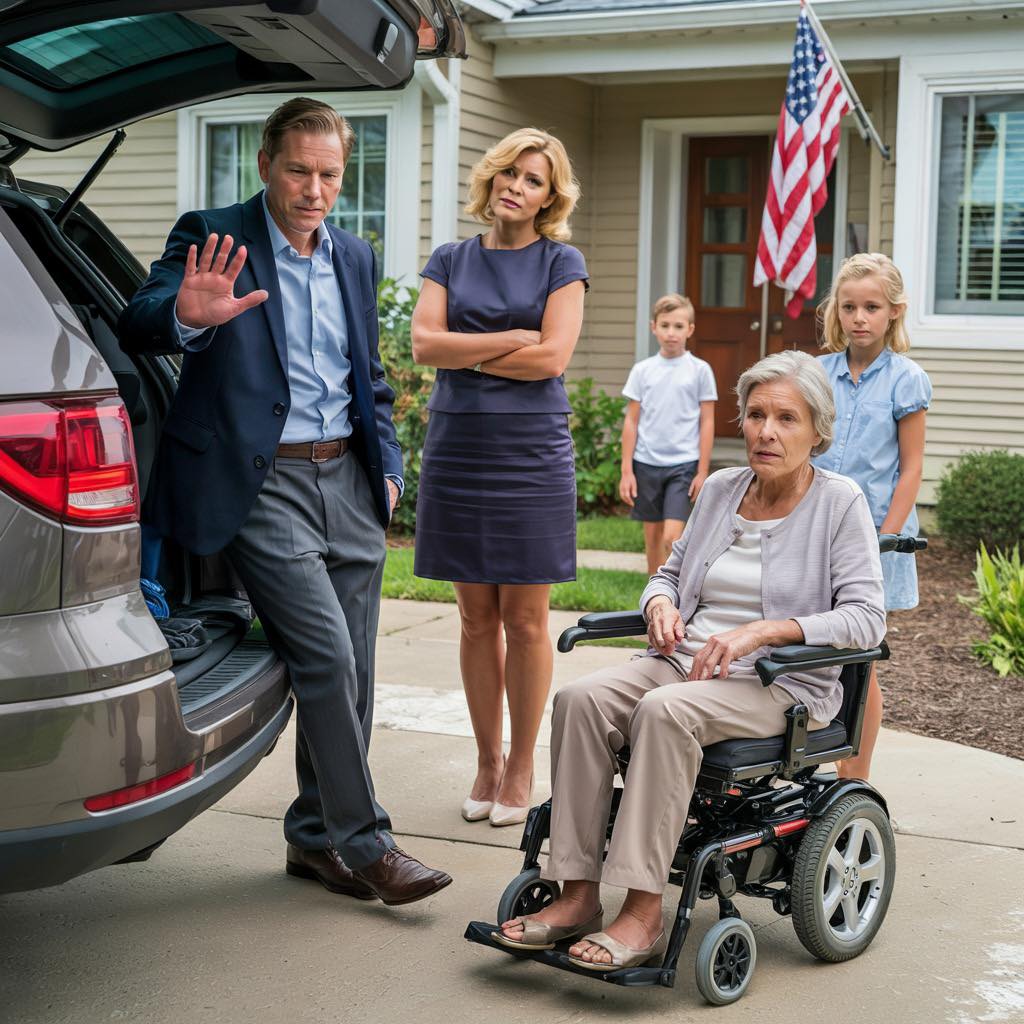 “What kind of help, Mom?” His voice had that careful tone people use when they’re already planning their escape.“I need somewhere to stay, just temporarily, until I can figure things out.”The silence stretched so long I thought the call had dropped. Then, “Mom, I’ll talk to Ashley. Let me call you back.”That was eighteen hours ago. No return call. So I did something I never thought I’d do—packed my small suitcase, called a cab, and showed up at their door unannounced. If my own son wouldn’t help his disabled mother, maybe seeing me face to face would remind him that family meant something.Their house was a sprawling suburban monument to success: three-car garage, manicured lawn, the kind of place that screamed “We’ve made it.” My wheelchair felt like a grocery cart at a Mercedes dealership. Michael opened the door in uniform khakis and a polo shirt that probably cost more than my monthly food budget. His expression when he saw me was something I’ll never forget—not surprise, not concern, but irritation. Pure, unmistakable irritation.