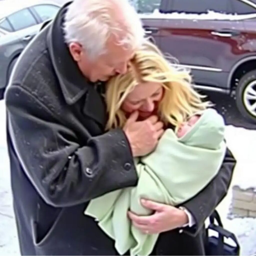 She stood near the far edge of the lot, half-hidden between parked cars. A young woman, barely more than a girl, holding a baby wrapped in what looked like a thin bath towel. She wore only a light sweater, the kind meant for autumn, not for a winter afternoon like this.
