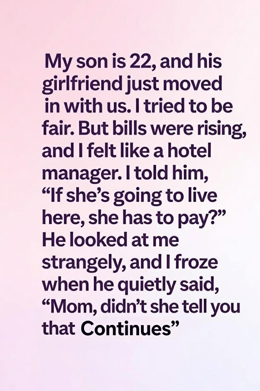 My son is 22, and his girlfriend just moved in with us. At first, I tried to be fair — giving them space to grow and build their lives. But as the weeks went on, I noticed the bills rising and the quiet tension in the house. I started to feel more like a host than a parent, so one evening, I finally told him, “If she’s going to live here, she needs to contribute.”