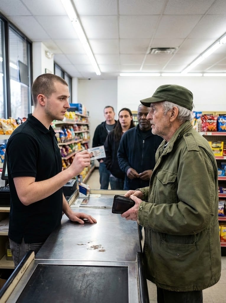 Arthur entered the store and used his military identification from the nineteen seventies to request a veteran discount. A young cashier named Kaden laughed at the outdated card and said the store only accepted current forms of identification. Arthur did not argue with the young man but explained that military IDs do not expire.Kaden remained dismissive and insisted on following store rules. Other customers in the line began to feel irritated while a woman tried to defend the veteran. Kaden refused to budge and stated that policy was more important than showing respect to someone who had served.