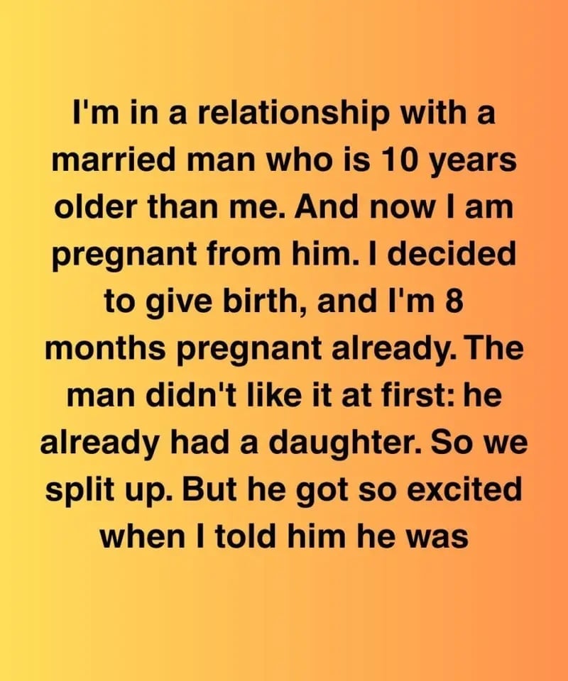 I’m 32 and eight months pregnant by Nazir, a 42-year-old married man I met through freelance work. He was open about having a wife and teenage daughter, though he claimed their marriage was over in everything but name. I knew the situation was complicated, but our relationship deepened, and despite being told years ago that I might struggle to conceive, I became unexpectedly pregnant.