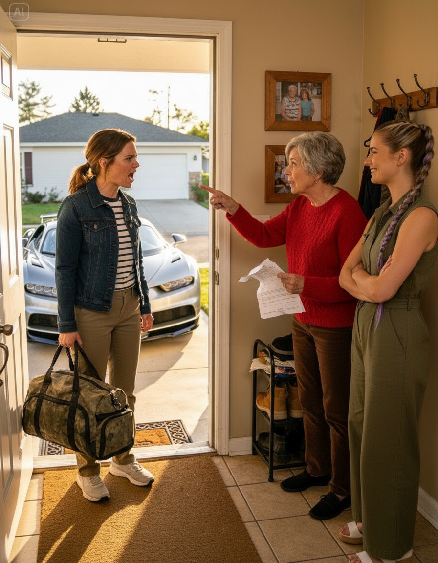 Mia appeared in the doorway behind her, phone in hand, lip gloss gleaming. “You seriously still here?” she sneered. “Mom, I thought you told her already.”