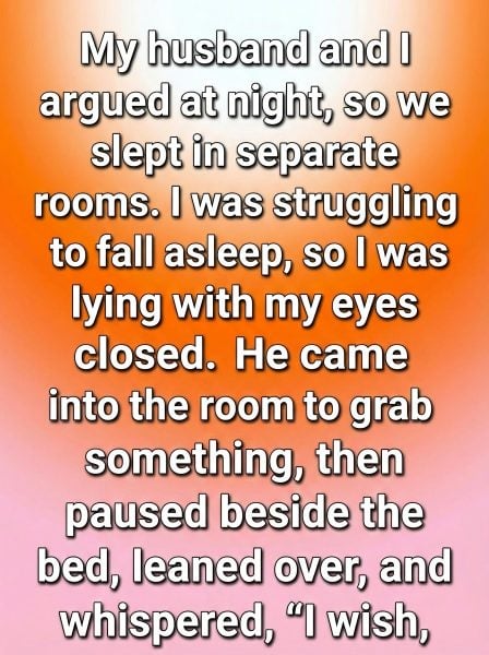 The argument started over something small, as most do. By the time the night settled in, the words had piled up, and the silence between us felt heavy. My husband and I decided to sleep in separate rooms to cool off, each needing space to gather our thoughts. I lay in the guest room, lights off, eyes closed, hoping sleep would come quickly. Instead, my mind replayed every sharp phrase and every unspoken feeling, leaving me restless and awake in the dark.