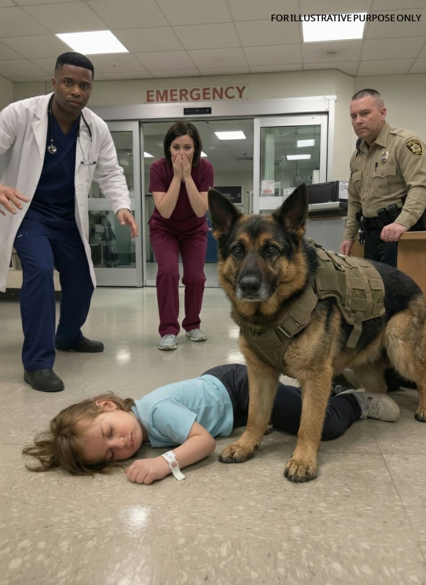 I had been an emergency physician at Saint Raphael Medical Center in Milwaukee for nearly eight years—long enough to believe I was immune to shock. One cold, rain-soaked Thursday in early November, just minutes before my shift ended, the ER doors burst open without an ambulance in sight. Instead, a massive German Shepherd skidded across the tile, drenched and frantic, dragging a barely conscious six-year-old girl by the sleeve of her yellow jacket. He released her only when he reached the center of the room, then stood over her protectively. She wasn’t breathing. While security hesitated, I approached slowly, assuring the dog we would help. After a tense moment, he stepped aside and collapsed. We called a pediatric Code Blue. The girl was hypothermic, bruised, and bore the marks of restraints gnawed through in desperation. This was no accident. When her heart briefly stopped, we fought to bring her back—and against the odds, we did.