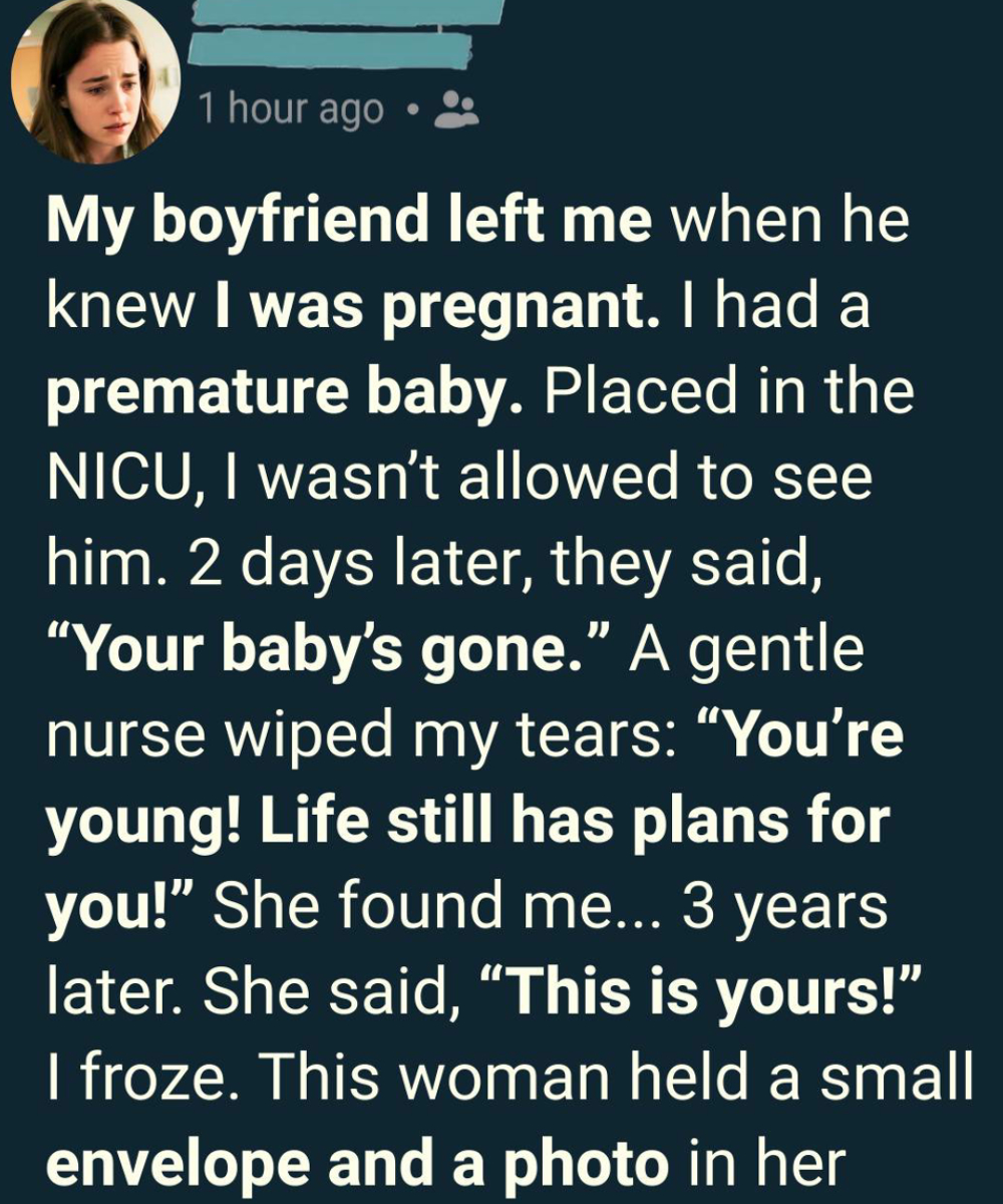 She looked almost exactly as she had that day—steady, kind, composed. In her hands was a small envelope and a photograph.