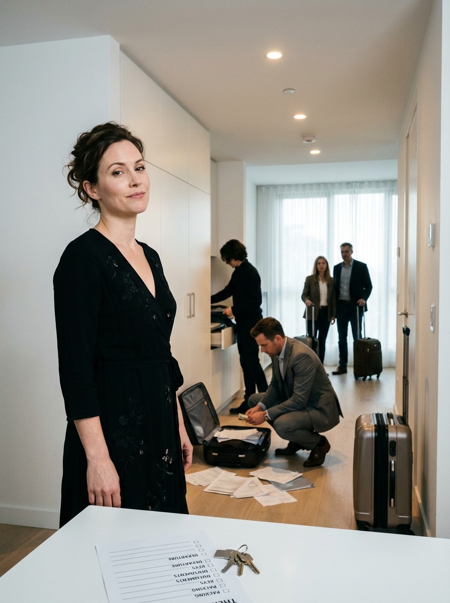 I found Marjorie Hale—my mother-in-law—and eight relatives moving through my home like a checkout line. Closets were open. Hangers dragged across wood. Suitcases were stacked in the hallway. On the dining table sat keys, envelopes, and a handwritten list: