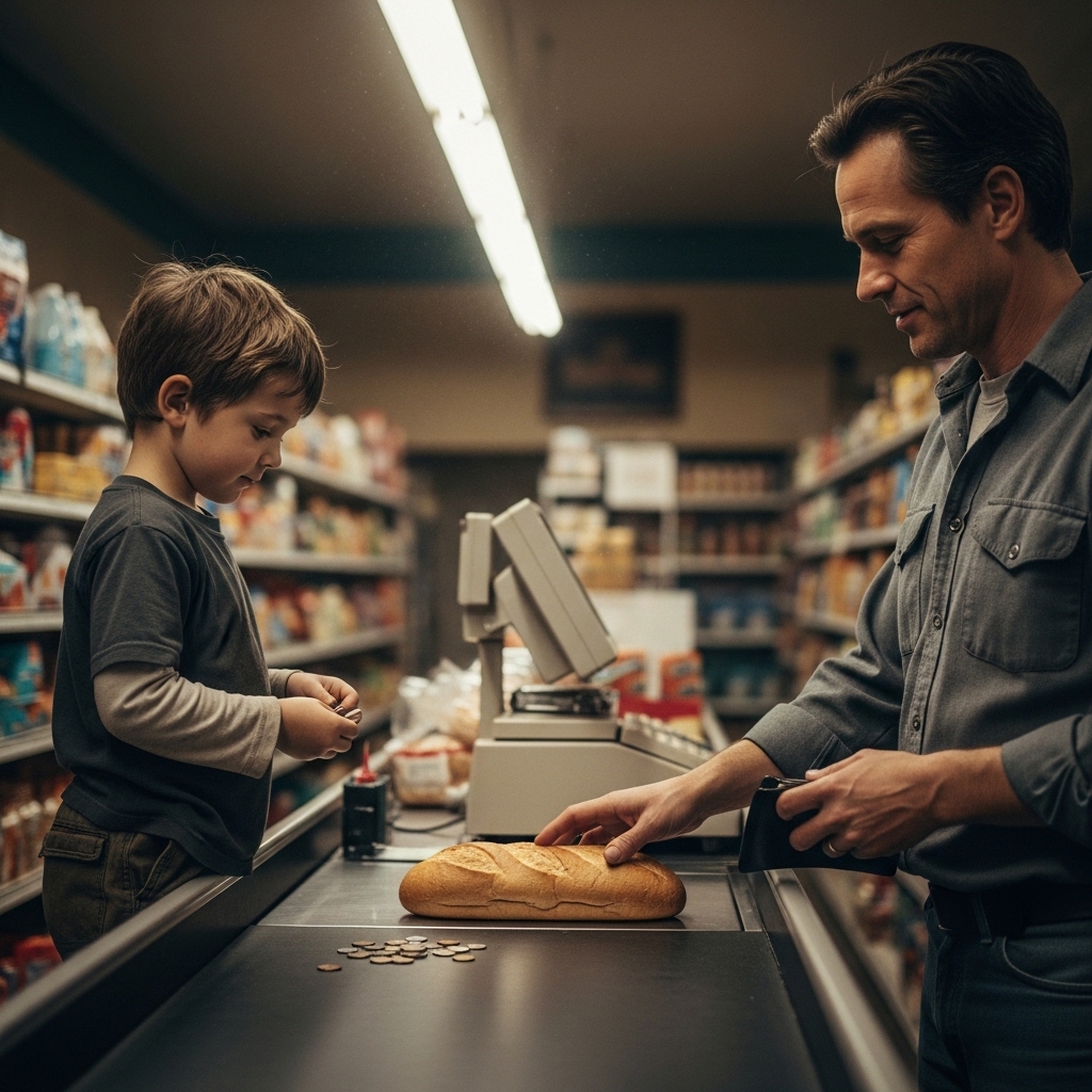 The man who paid for the bread stood silently for a moment before turning to the cashier.