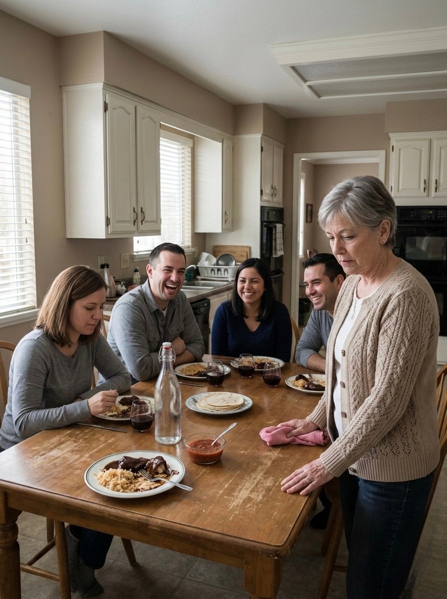 “Looks like somebody showed up starving tonight,” my son in law said with a crooked smile as he watched me reach for another spoonful of mashed potatoes. The dining room filled with laughter that rolled across the table like it had been rehearsed, and I felt something inside my chest crack in a way that made it difficult to swallow the bite already in my mouth. I stood up carefully, pressed my napkin to my lips, and said in a low voice, “Excuse me for a moment,” yet no one really looked at me closely enough to see the heat rising in my face.