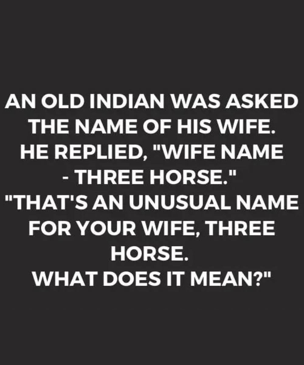 “Three Horse?” he repeated. “That’s quite an unusual name for a wife. What does it mean?”