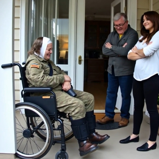 The words lingered like smoke, hanging heavy in the damp air as I turned my wheelchair back towards the taxi. My heart pounded in my chest, each beat resonating with a mixture of betrayal and resolve. I had given so much for this family, for this country, yet here I was, with nothing but my own determination to rely on.My sister, Chloe, stood at the edge of the porch, arms crossed, lips twisted into a smirk that felt like a knife in my back. “I need your room for my shoe collection,” she sneered, as if my life and sacrifices were as insignificant as a pair of old sneakers.