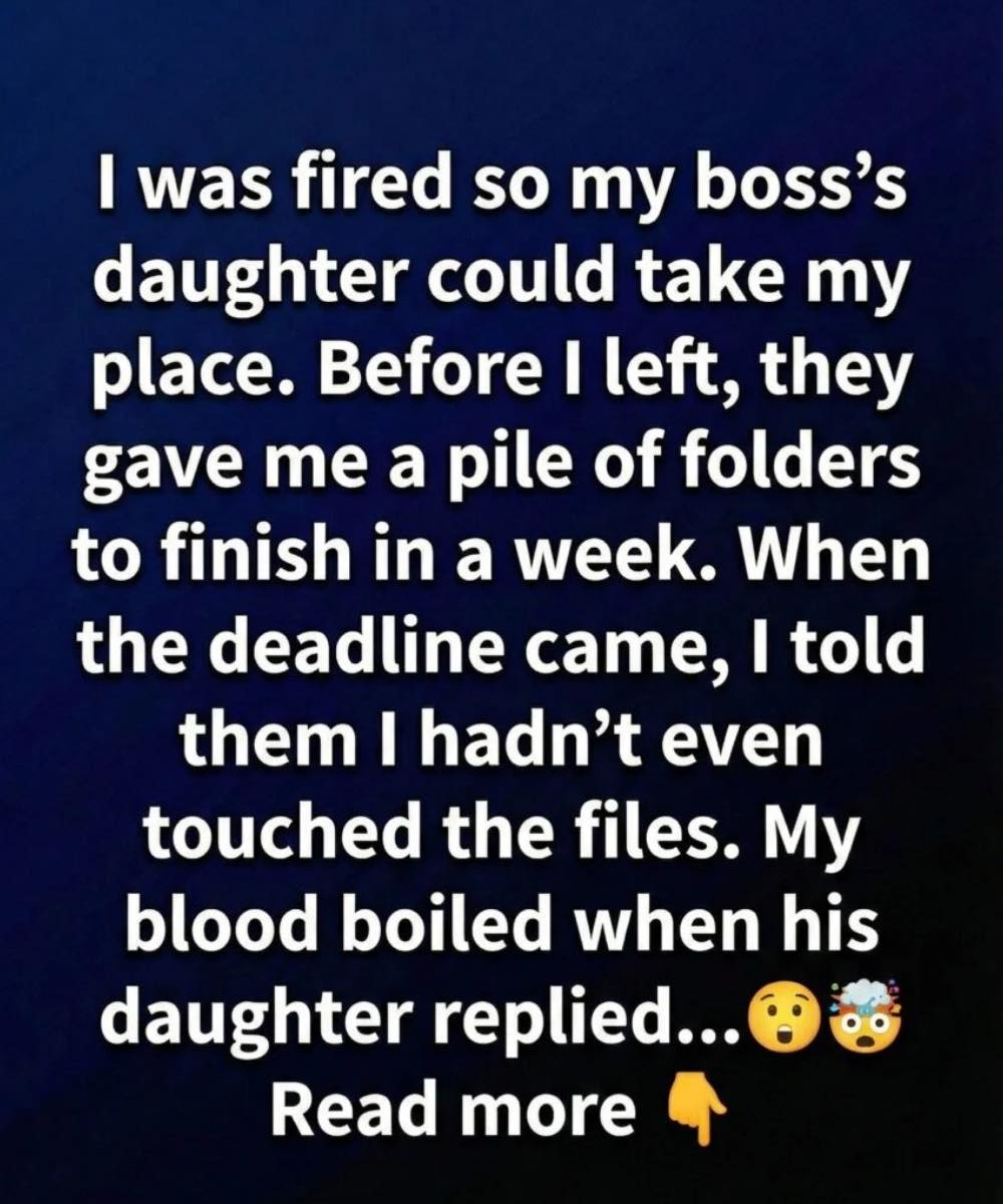 “Before you go,” he said, sliding the folders toward me, “could you finish these reports by next Friday? It would really help with the transition.”