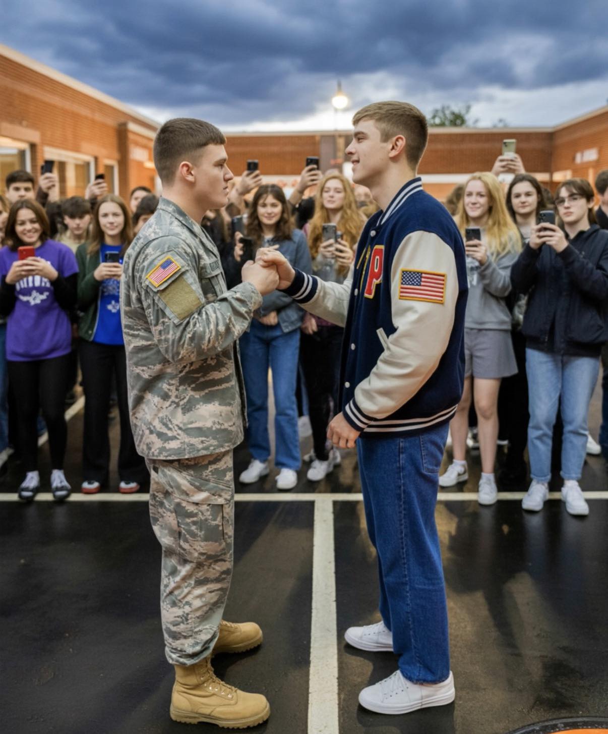By the time we walk out of the school toward the parking lot, the atmosphere has completely changed. The video is already circulating—I can hear phones pinging with notifications all around us. Students are watching us walk past with expressions of awe and vindication. Some are whispering, some pointing, some even applauding quietly. Lily isn’t the invisible victim anymore. She’s the girl whose big brother came home and stood up to the bully everyone was afraid of.
