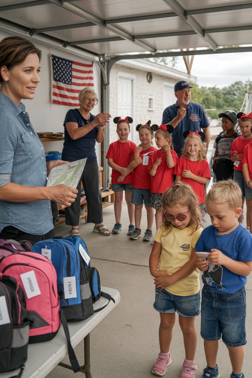 Matching red shirts. Mouse ears with names in glitter. Lanyards with little plastic pouches. Five embroidered backpacks on the folding table, each one tagged in careful letters: Nana’s Grandchildren Disney Trip 2026. My sister’s three stood shoulder to shoulder, bouncing with that specific pre-trip energy that belongs to children who already know something wonderful is about to happen. My brother’s two were beside them, straps already pulled tight, as if they were afraid the magic might slip off if they loosened anything.