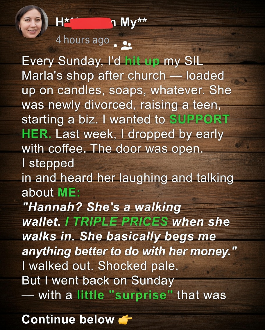 “I triple prices when she walks in. It’s like taking candy from a baby.” My heart sank. I’d been nothing but kind, and she saw me as a joke.