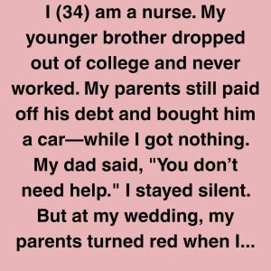 I (34) am a nurse. My younger brother dropped out of college and never worked. My parents still paid off his debt and bought him a car—while…